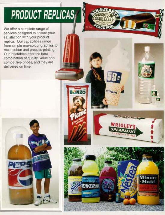 Inflatable product replicas. Create promotional products that leave a lasting impression, by duplicating your product in a large blow up. Kids love them. They can also be used in the pool or as a lawn chair. All shapes are possible.